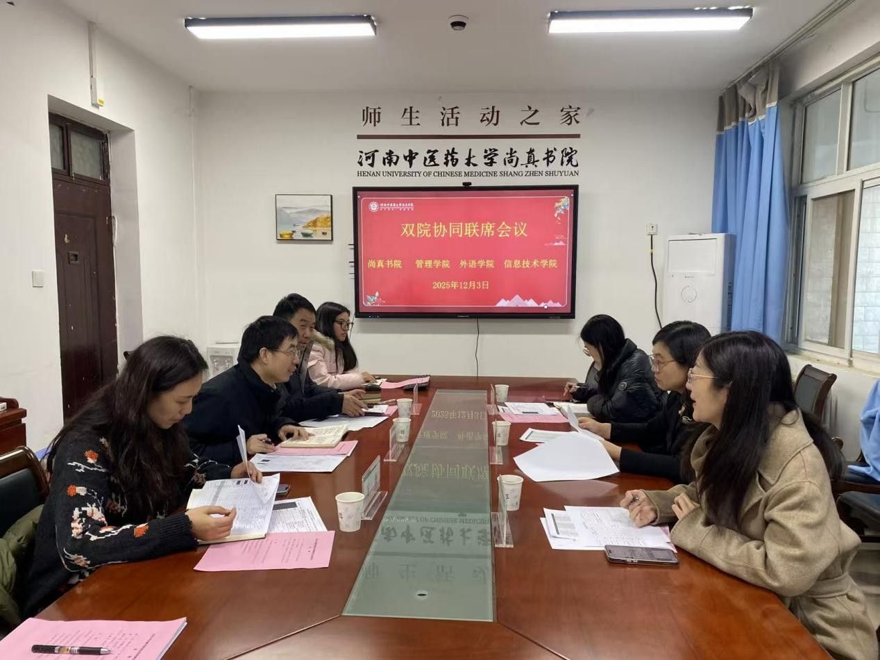 本网讯(文/彭一凡 图/刘欣欣)为深化双院协同育人机制,统筹推进学生学业发展规划与心理健康服务工作,近日,尚真书院与管理学院、外语学院、信息技术学院召开协同工作会议。学院及书院相关领导、书院学业助导中心相关负责人在5号楼153会议室共同研讨学生成长成才保障体系建设工作举措。