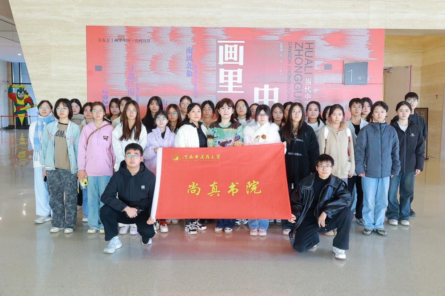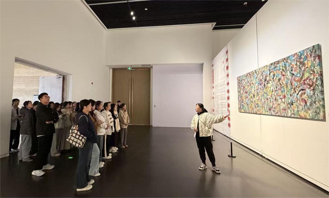 本网讯(文/宋梦阳 图/王高展)为进一步推进“五育融合”走深走实,依托美育浸润筑牢学生文化根基,借助艺术研学提升学生骨干综合素养,2025年11月28日,尚真书院组织学生会骨干成员及“四艺学堂”部分学员赴郑州美术馆开展美育研学活动。活动邀管理学院公共艺术学科老师和祎鸣全程讲解,带领学子走进“在东方·画里中国——当代中国画作品展”与“关于郑州:1949-2024——郑州城市文化主题艺术展”,开启了一场兼具能力提升与美育熏陶的实践之旅。