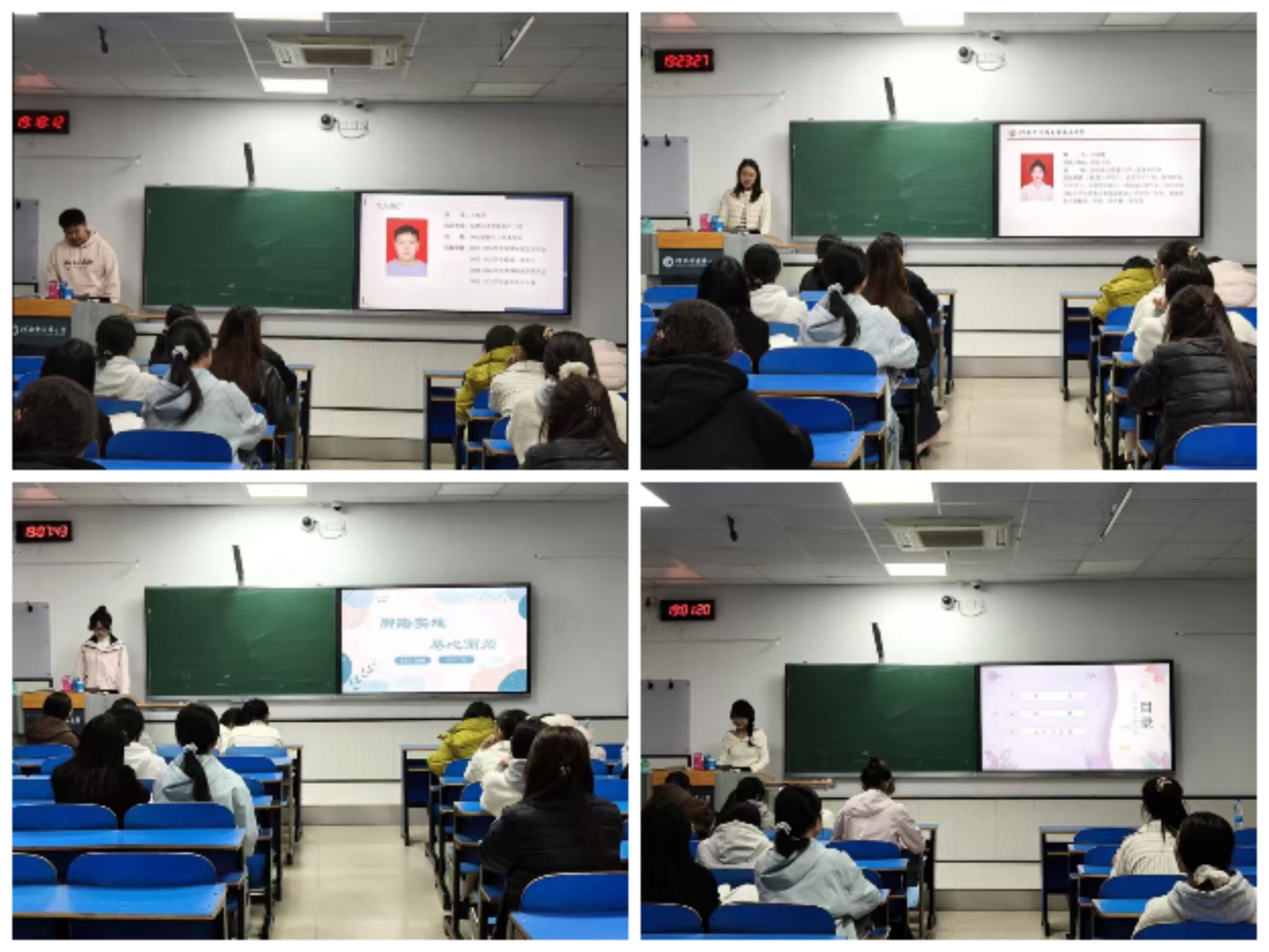 本次分享会邀请到了尚真书院的四位国家励志奖学金获得者:周冰冰,2023级应用心理学本科班;张亚楠,2023级公共卫生事业管理本科班;关智超,2023级软件工程本科班;刘佳鑫,2023级计算机科学与技术本科班。